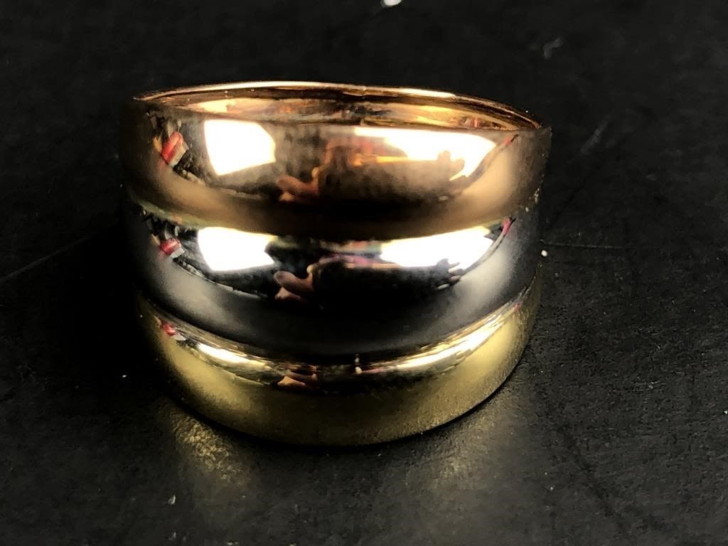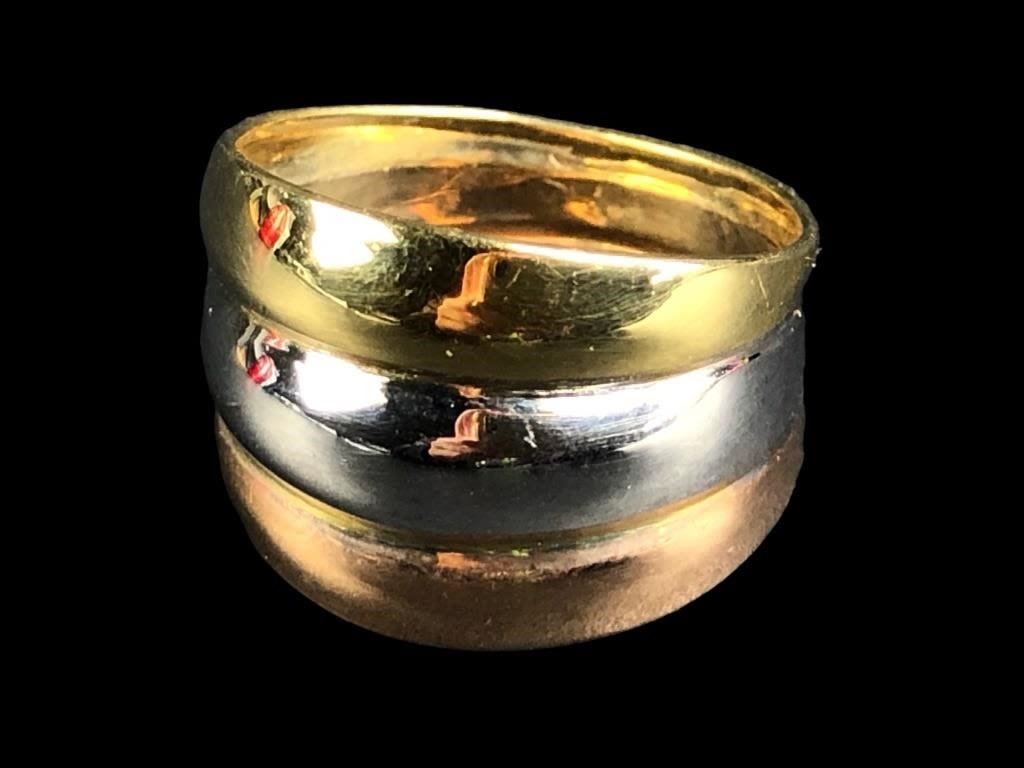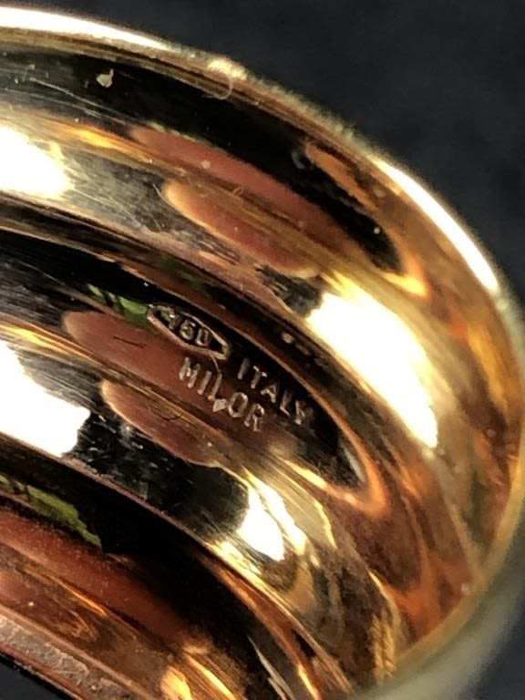 Size 9 / 9.5. Marked “750 ITALY MILOR” inside band. 2.91 grams.