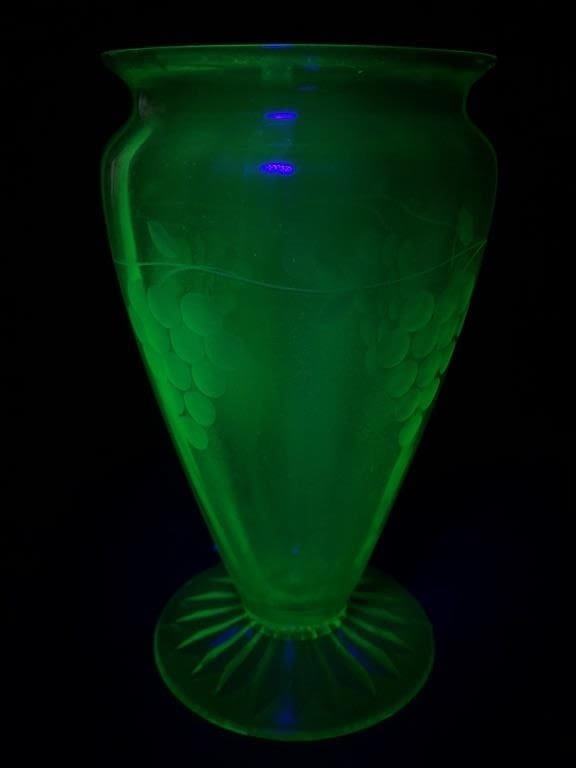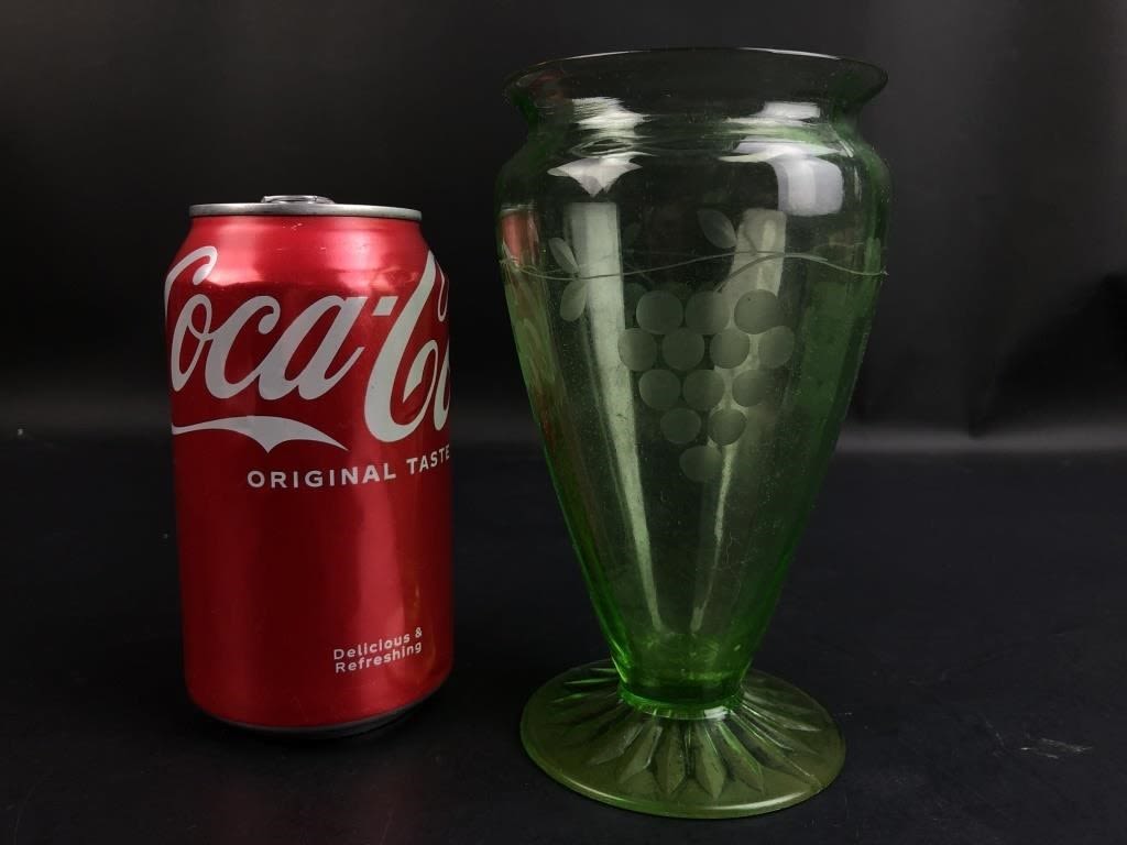5 7/8″ H. Flea bite chips along the bottom rim.