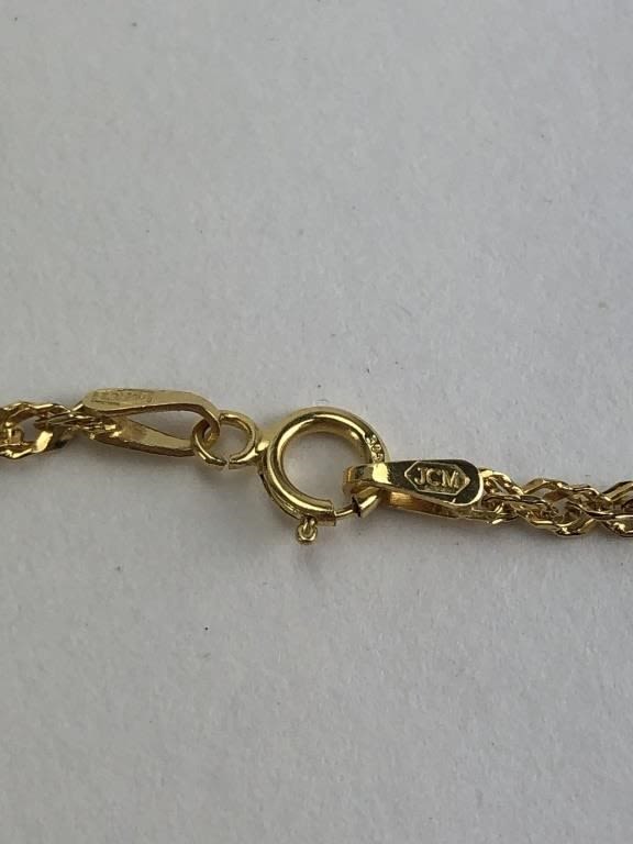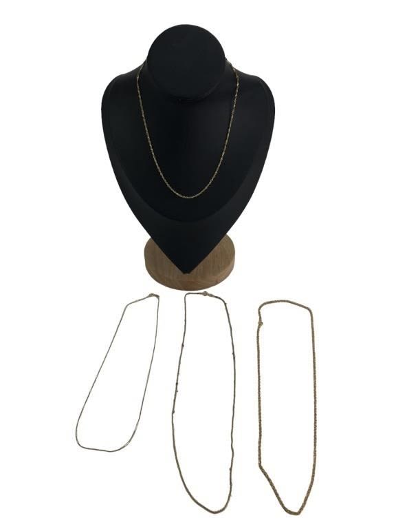 2 Approximately 18″ L & 2 approximately 15″L. All are marked 14K or 14KT. One of the necklaces has some lint trapped in the braiding as seen in photos. Total weight 5.28 grams.
