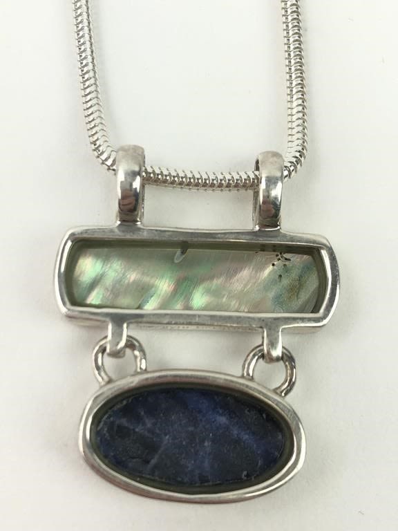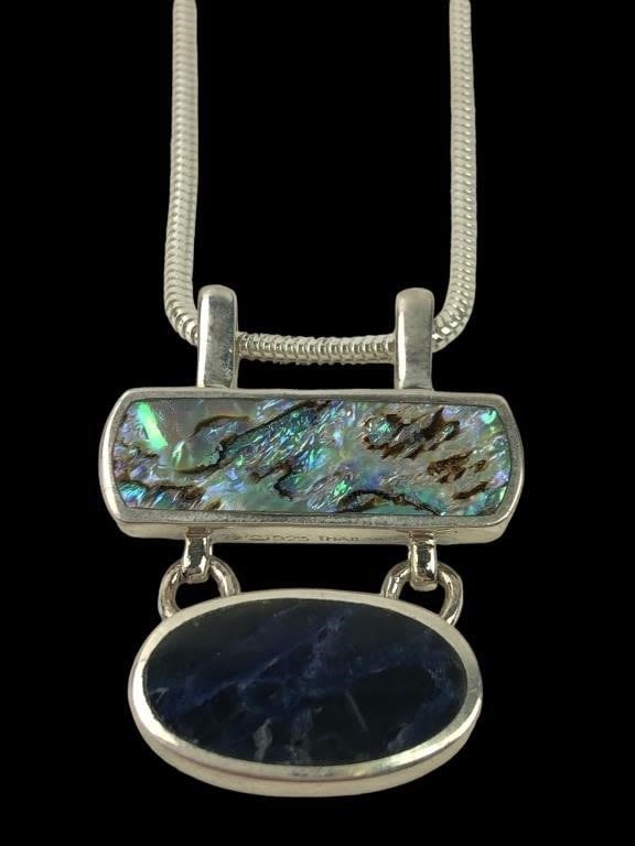 14.7 Grams. Marked SU 925 THAILAND on pendant and 925 ITALY on necklace.