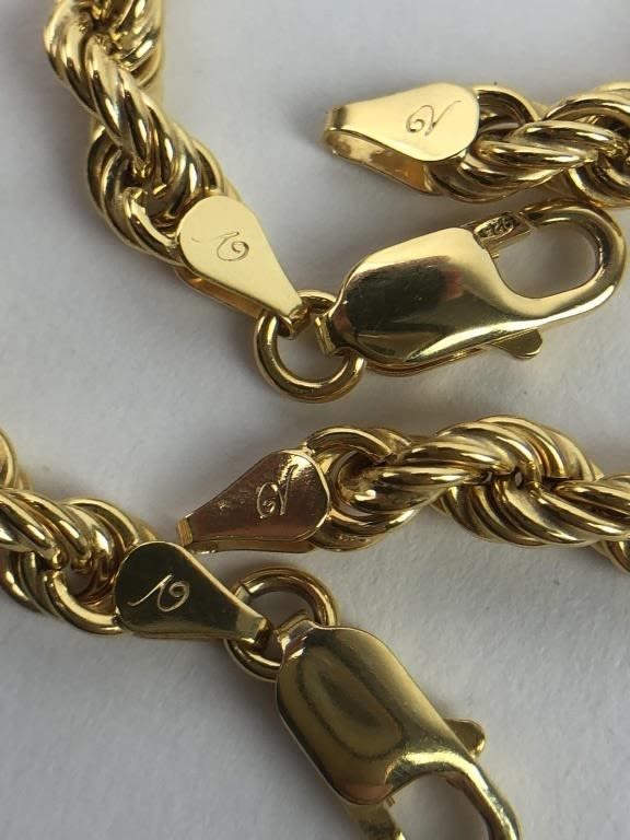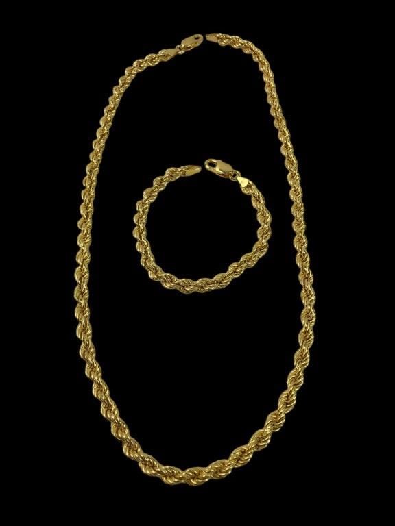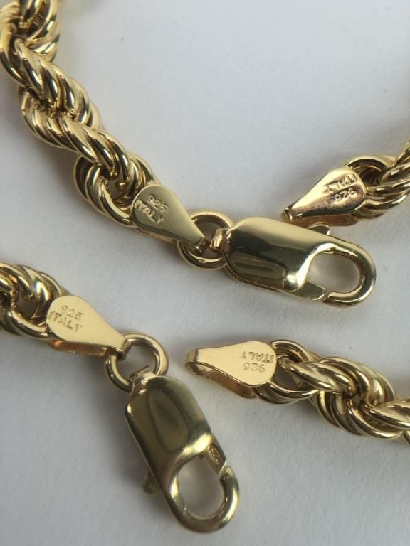 Both Marked 925 ITALY and Hallmarked. Necklace: 22″L. 26.75 grams. Bracelet: 7.5″. 9.32 grams.