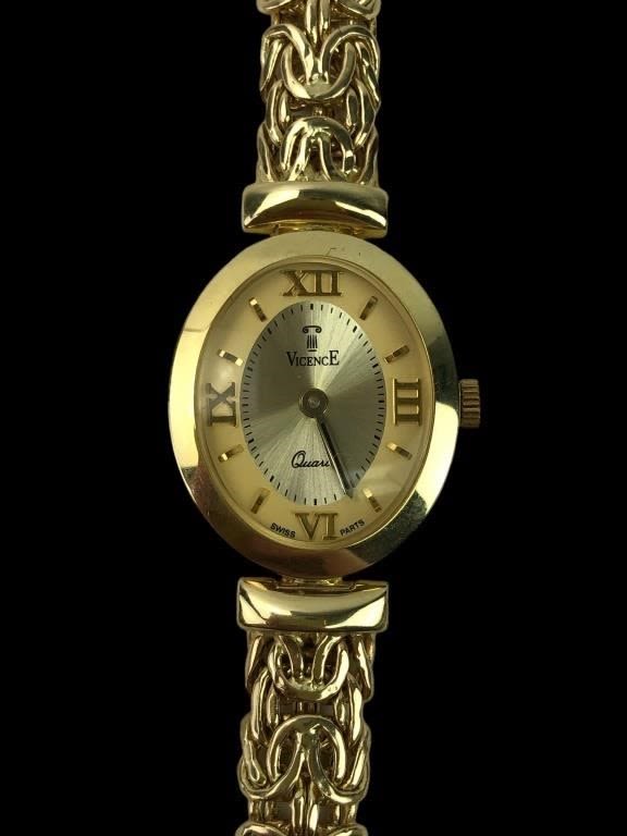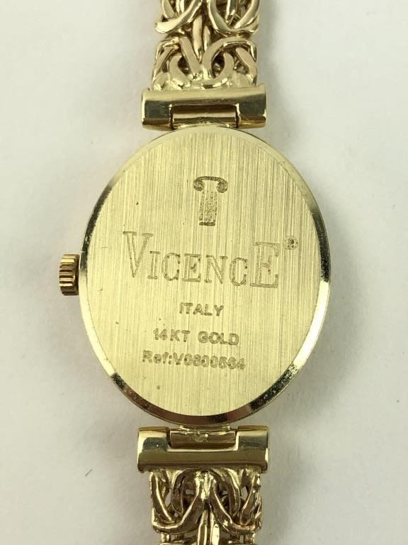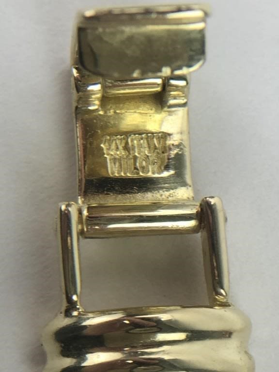 Marked 14K Milor Italy on the band. Marked Vicence Italy 14KT GOLD on back of watch. Watch is untested. 21.93 total grams. 14.10 dwt. 7.25″ L.