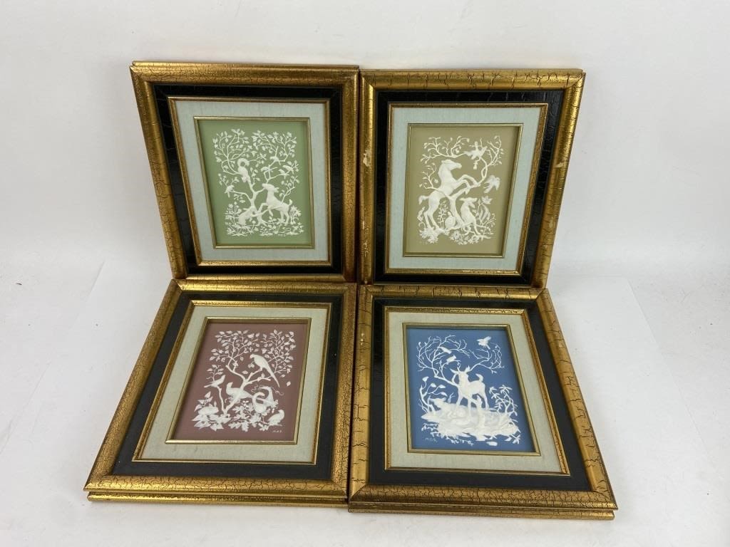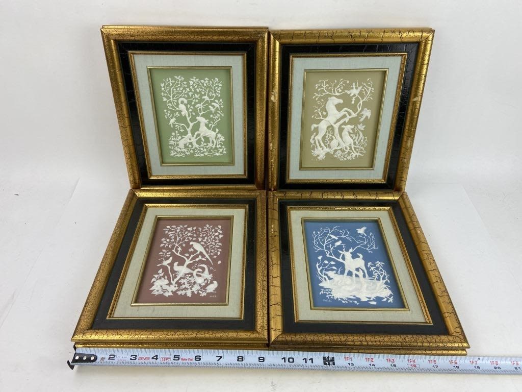 Frame Art; Each frame measures 11×9.5″. A Few scuffs to the frames. Images are dimensional lay on top of the backing.