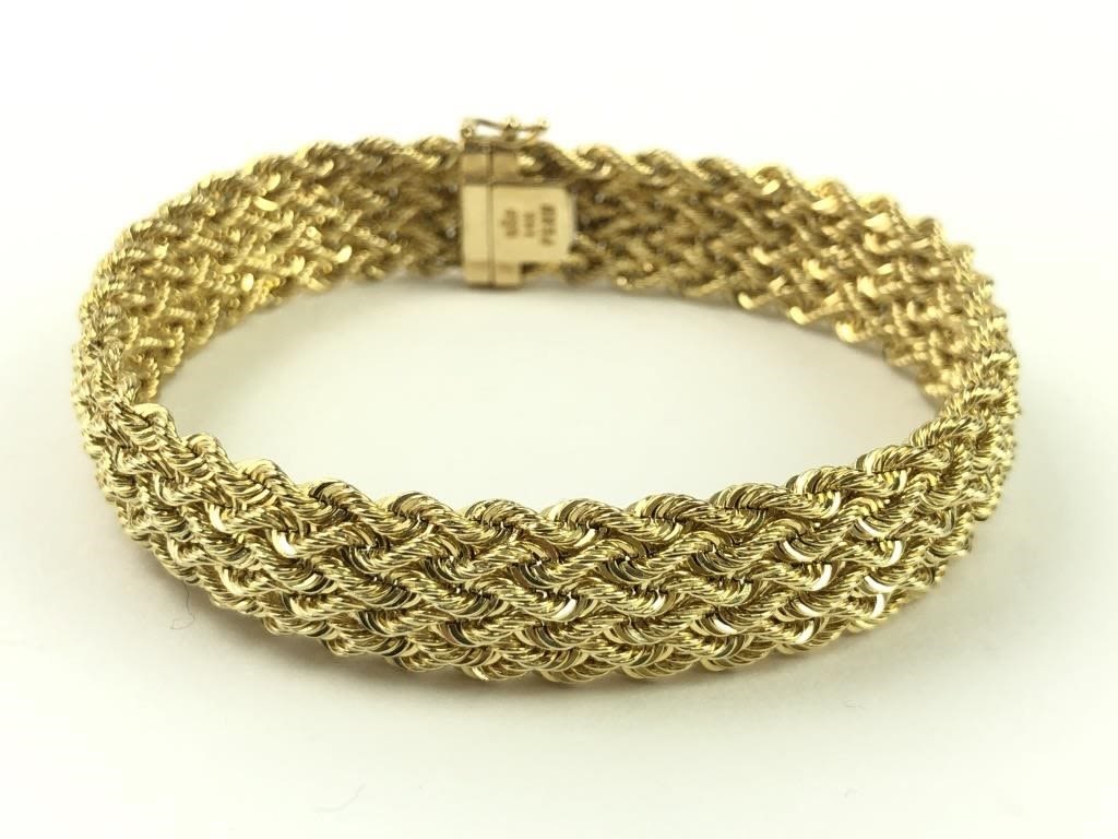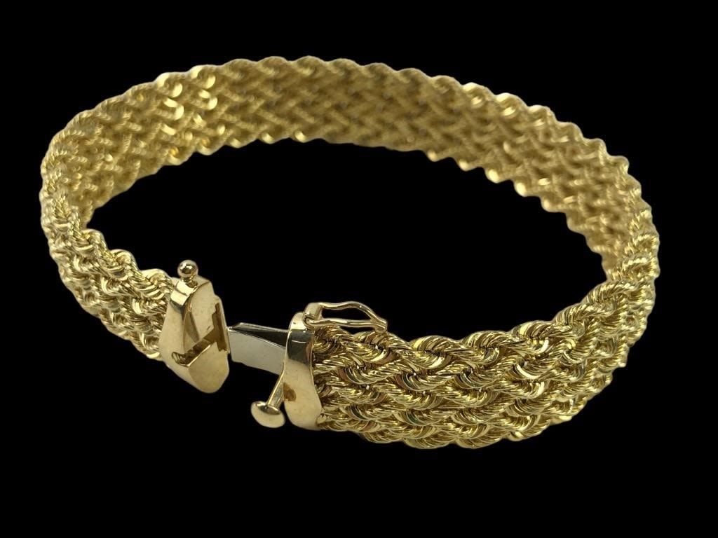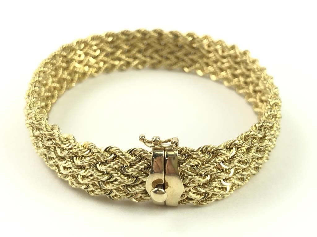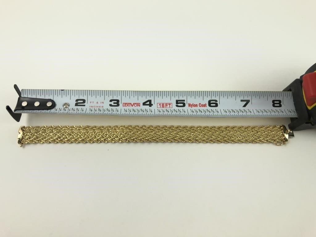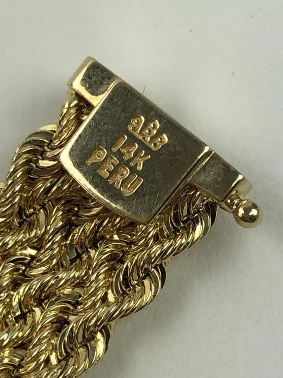 8″ L. 12.94 grams. 8.32 dwt. Marked “BBB 14K PERU”