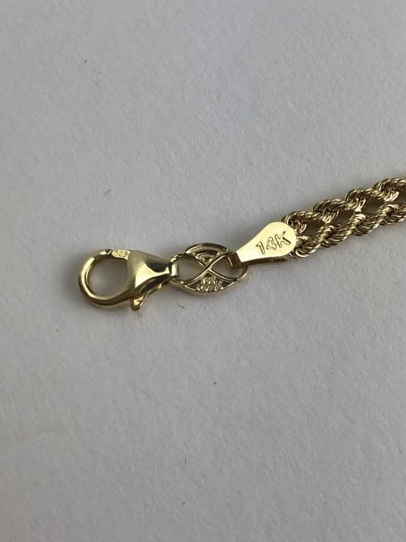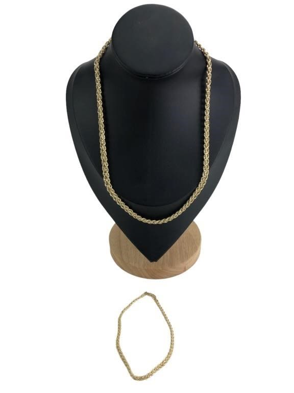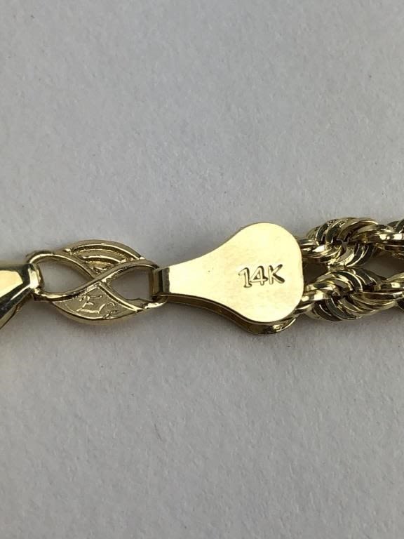 18″ Necklace. 8″ Bracelet. Both marked “EG 14K PERU” & “585”. 8.15 grams.