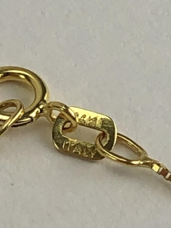 19.5″L. Marked “14KT” “ITALY” & “milor”. 1.08 grams.