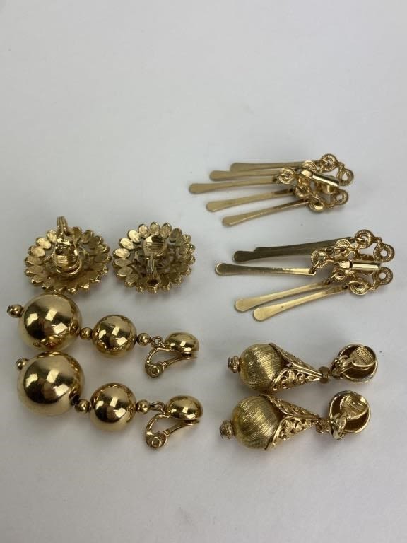 Mixed gold tone earrings.