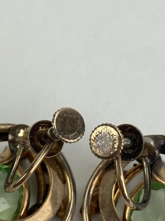 Vintage Screw type earrings. Appear to be marked 1/20 12k GF. 3/4″ diameter. Quarter for size reference.