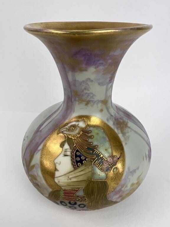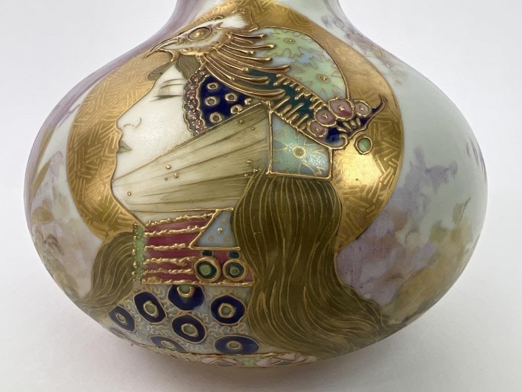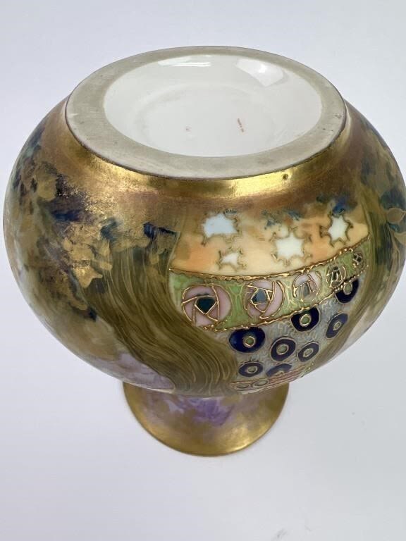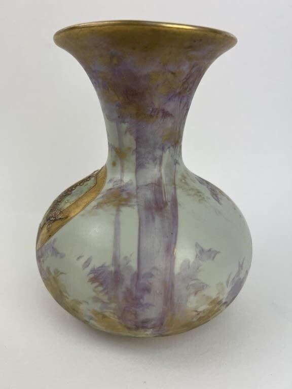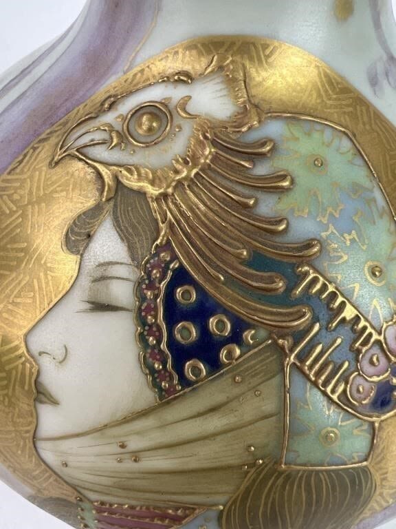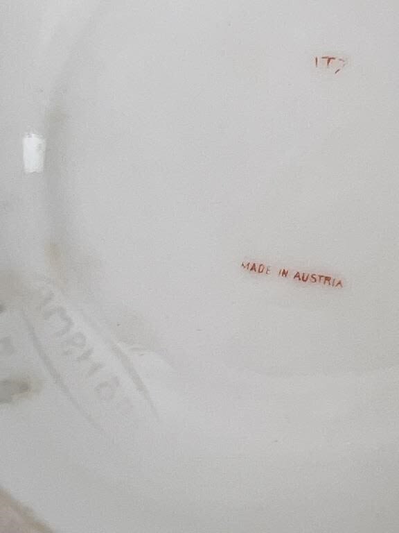 6.5″ H. Impressed oval AMPHORA and 474 marks visible on base. Marked made in Austria on vase. Very nice condition.