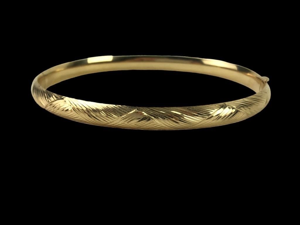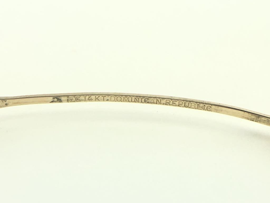 Etched yellow gold. Marked EG 14KT DOMINICAN REPUBLIC. 6.4 Grams.