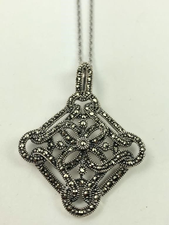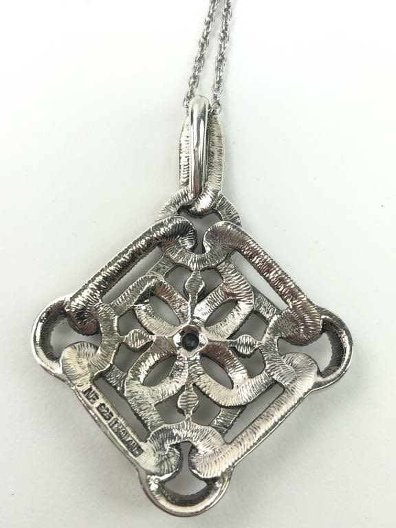 1.25″ x 2″ Pendant. 18″ Chain. Both marked NF 925. 11.2 grams.