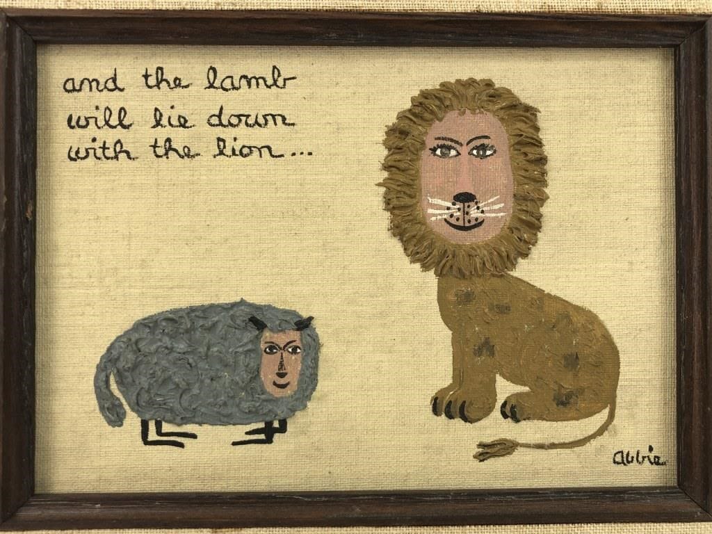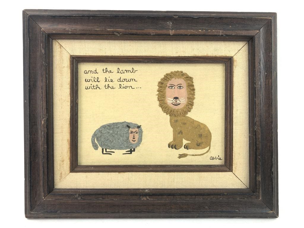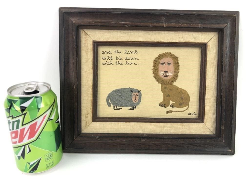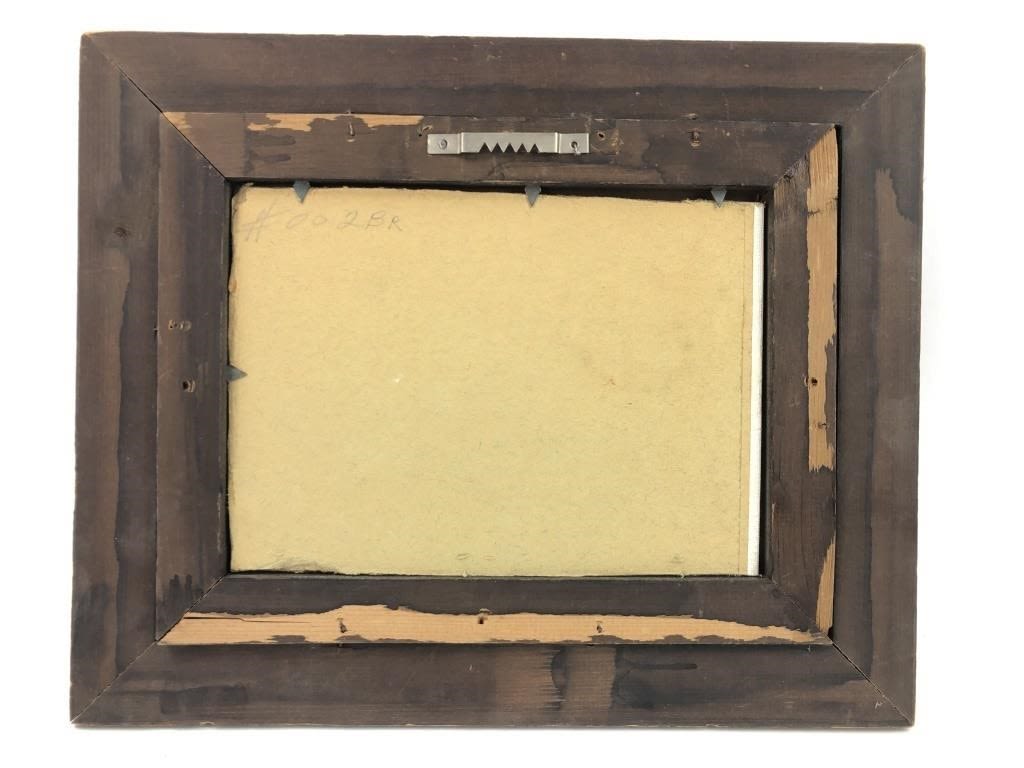 11.25 x 9.25″. Frame shows light wear and painting needs light cleaning.